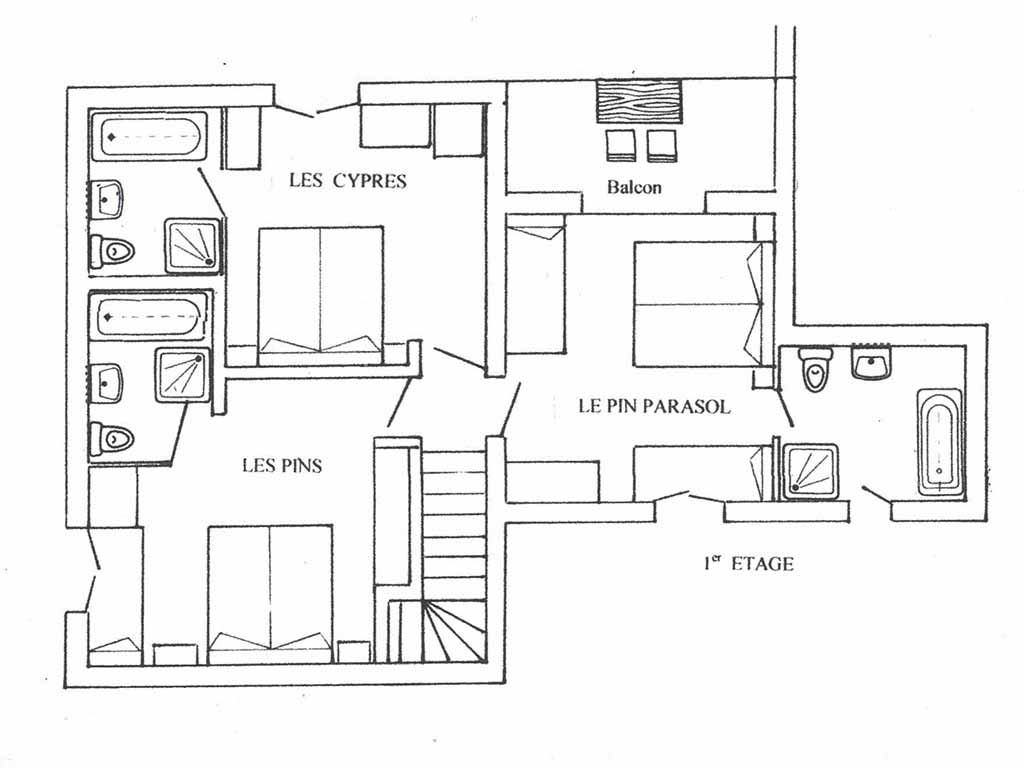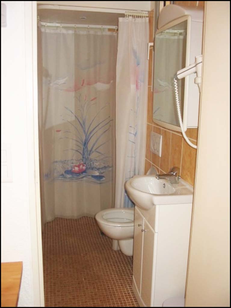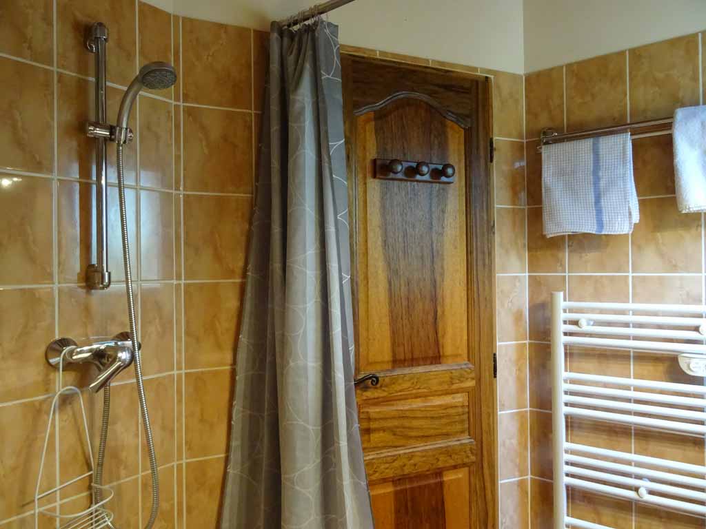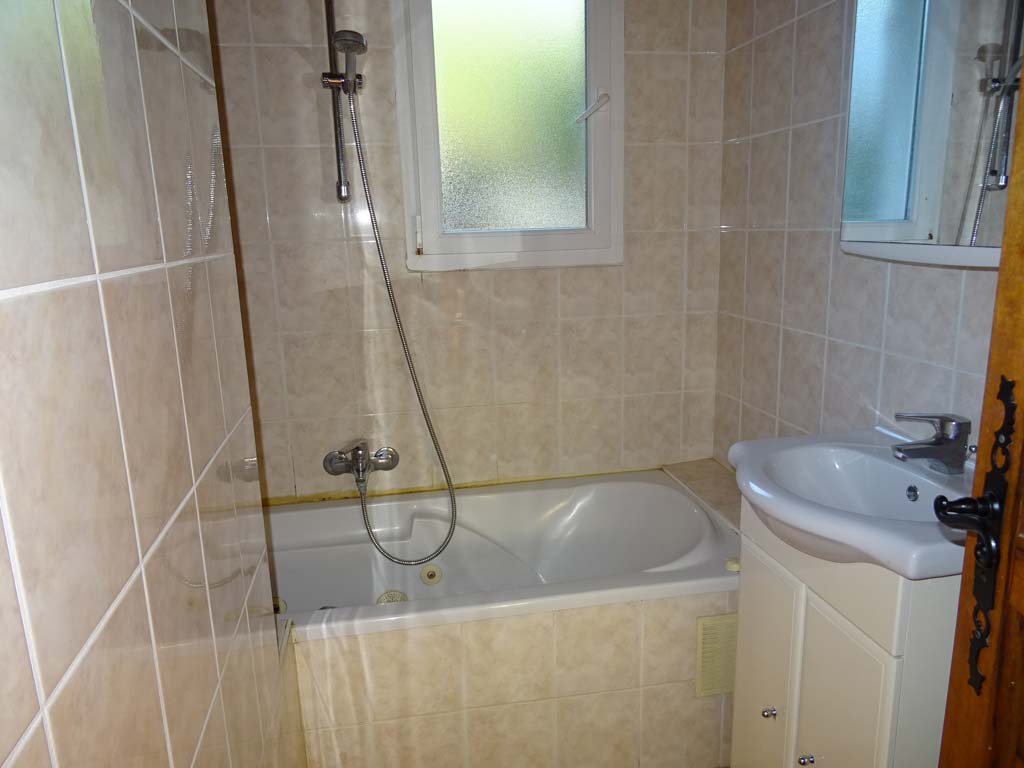 - Salle d'eau avec baignoire balnéo, lavabo, sèche-cheveux, sèche-serviettes et WC.